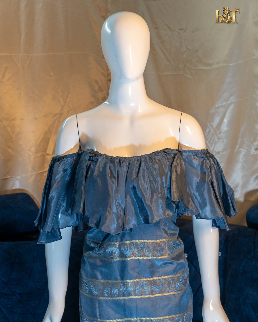 • Off-shoulder design for a chic, modern look