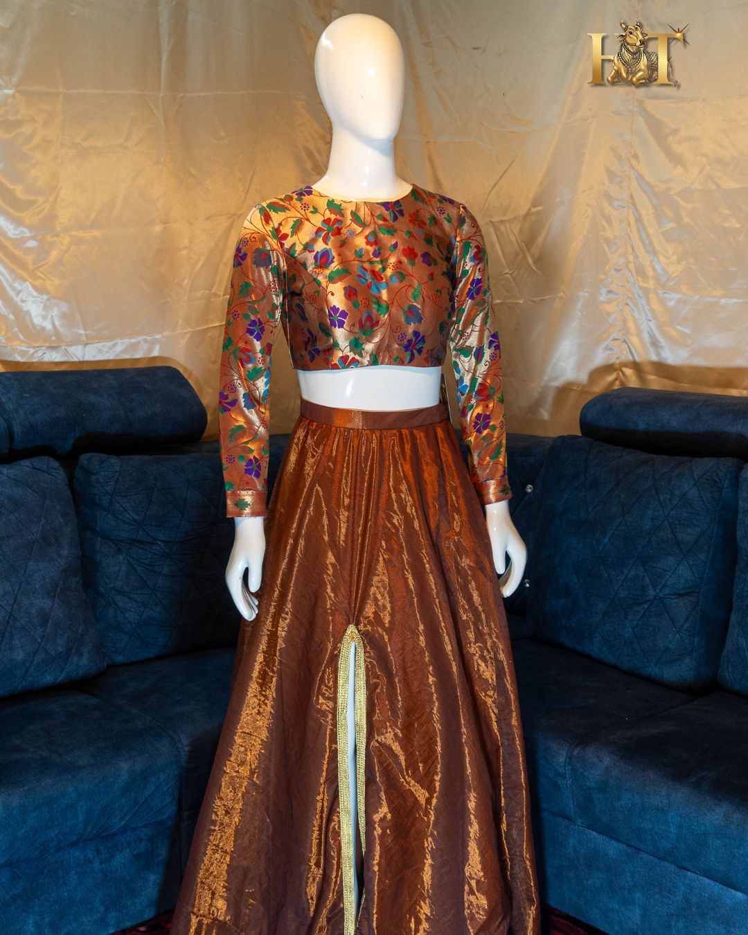 • Design: Long-sleeve cropped Paithani top paired with a flowy silk skirt