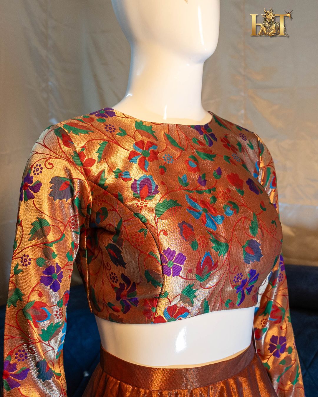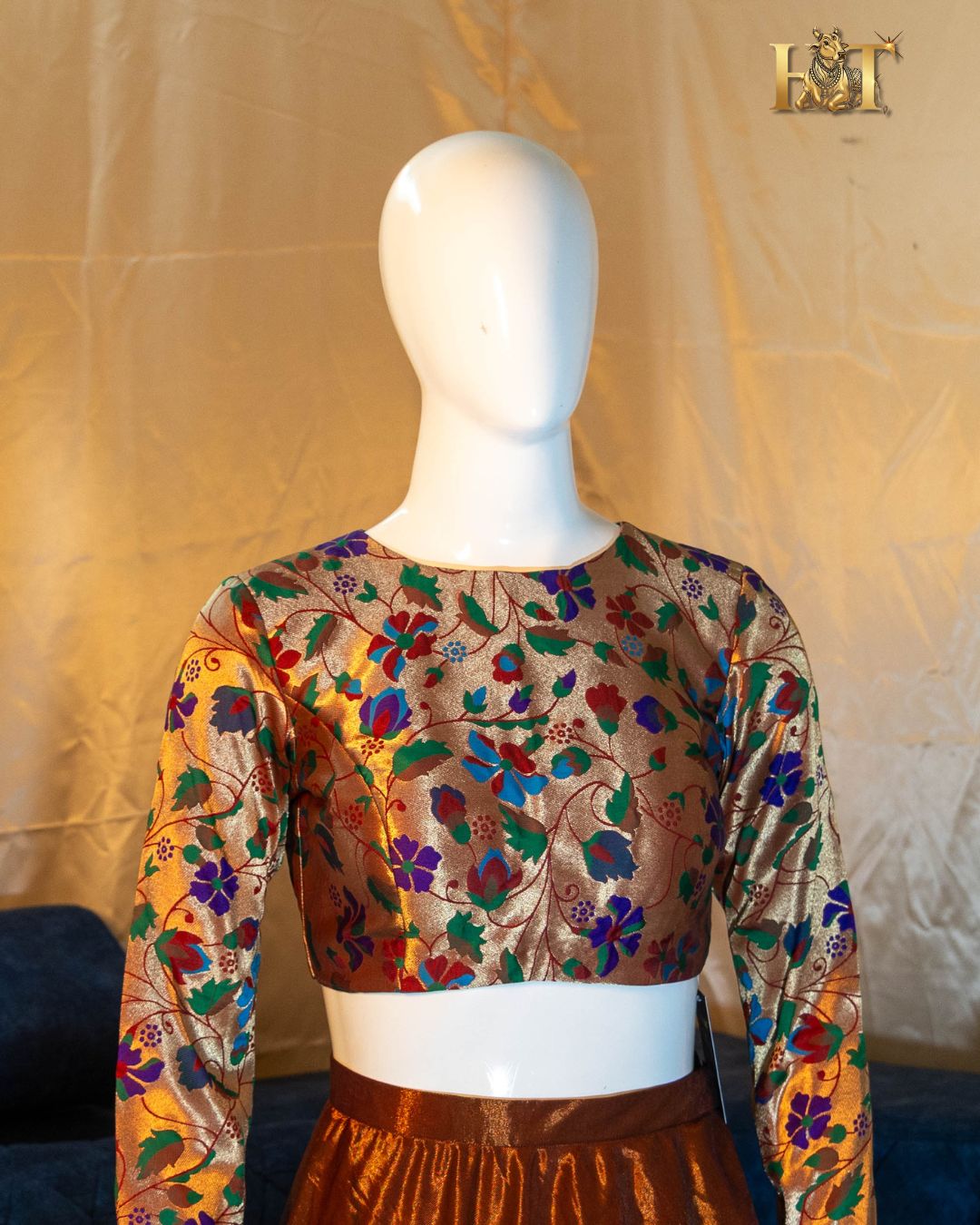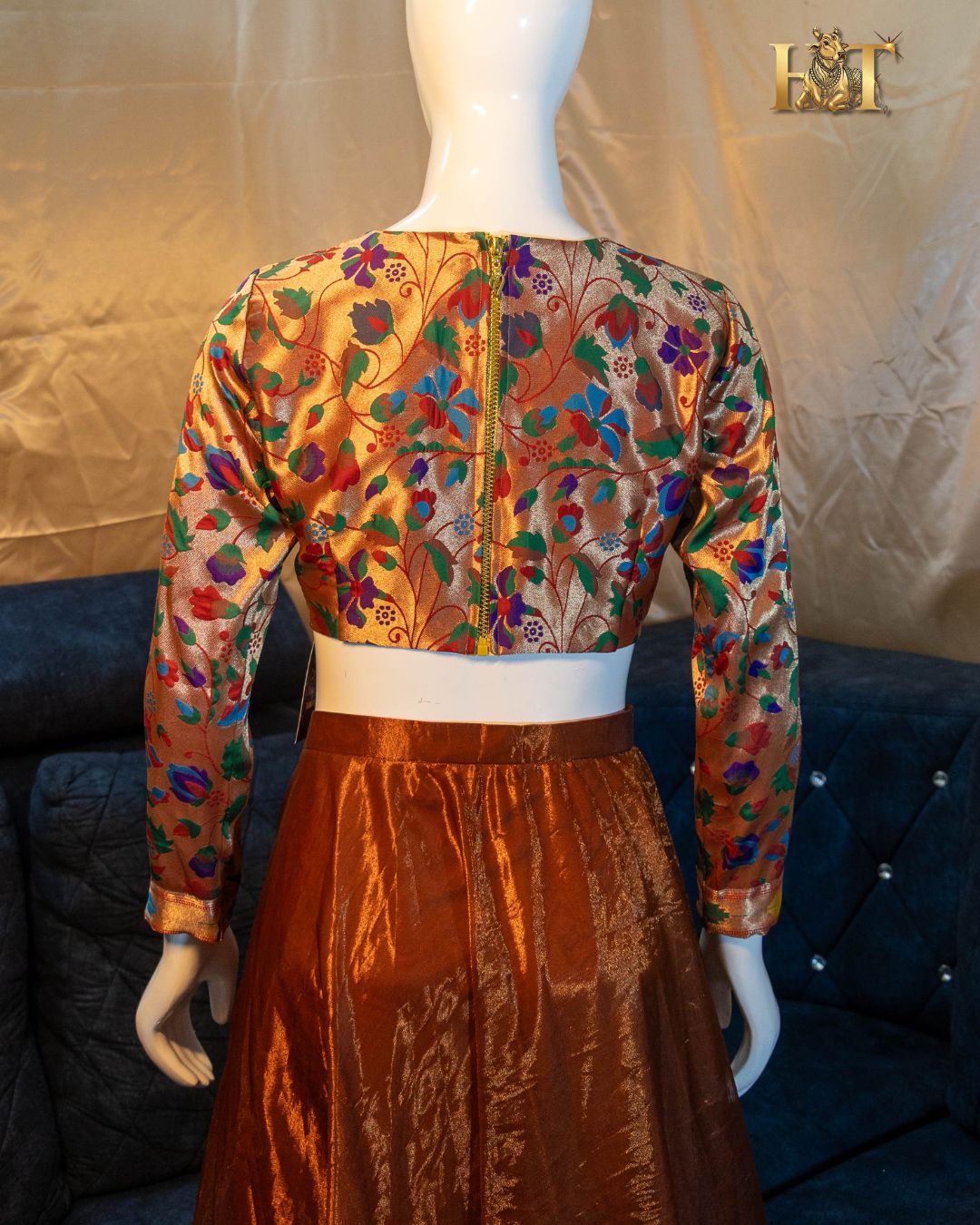 • Top Fabric: Authentic Paithani brocade with multicolor floral weave