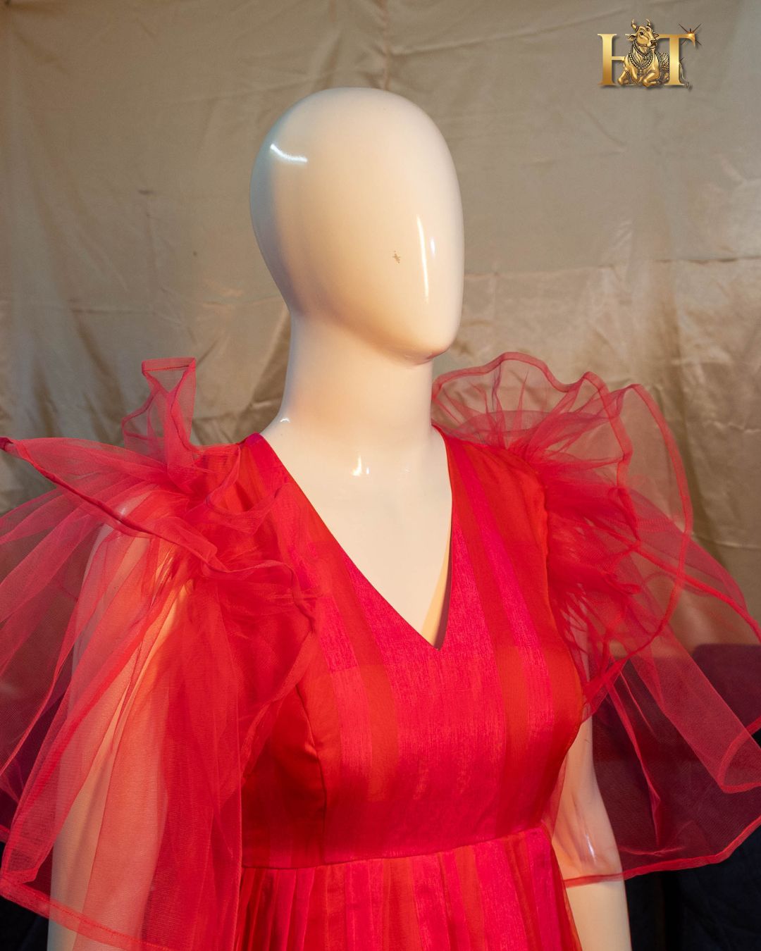 - Sleeves: Flared Netted Sleeves with Fine Detailing