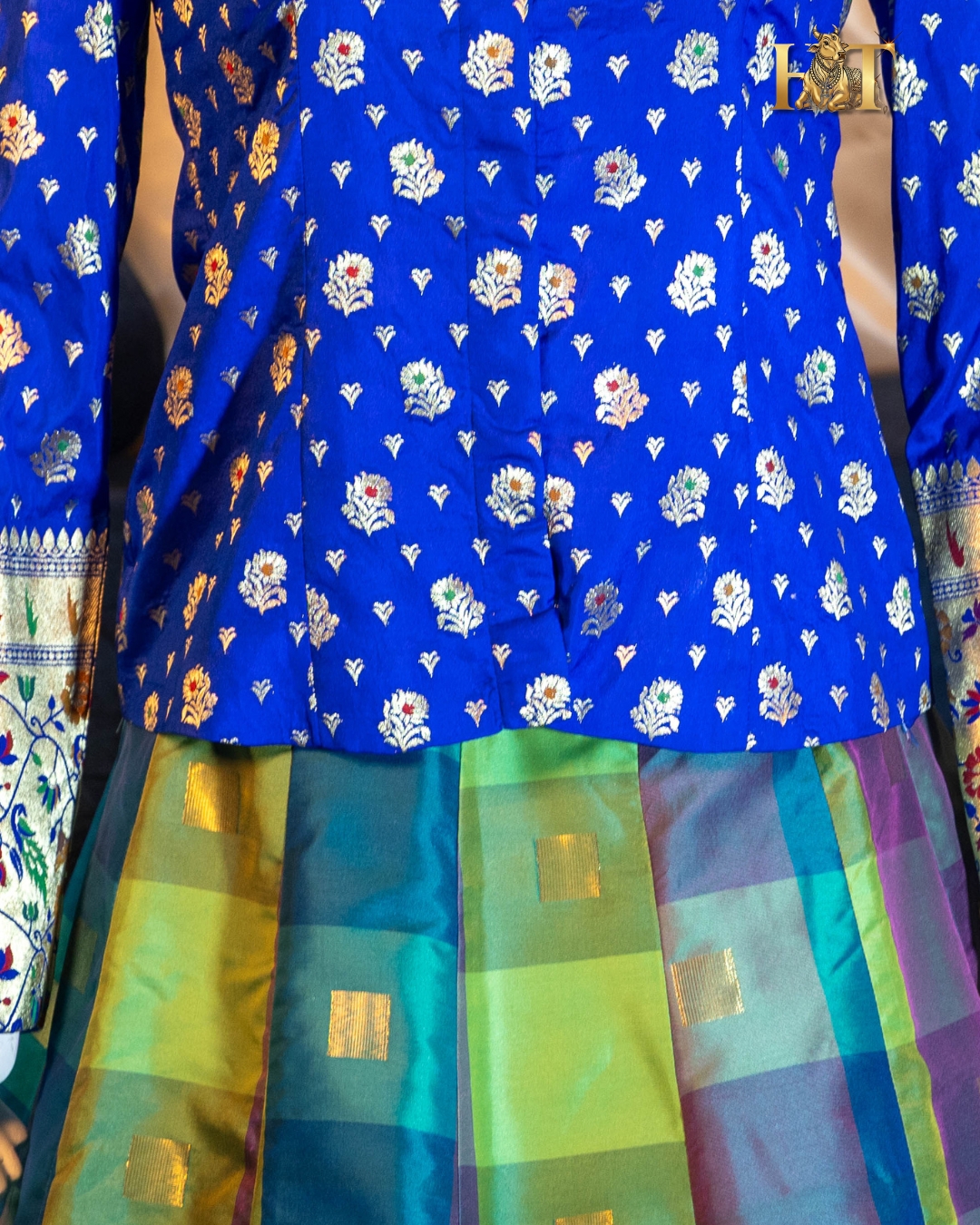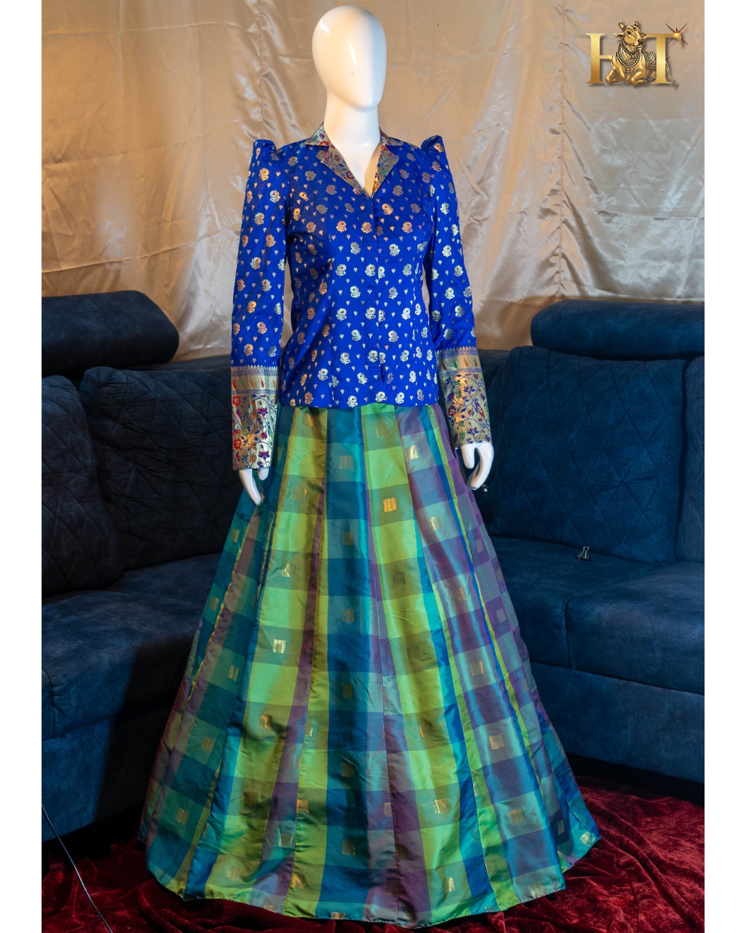 Kanchipattu Ghagra paired with a Banarasi Top stitched in a suit-style silhouette
