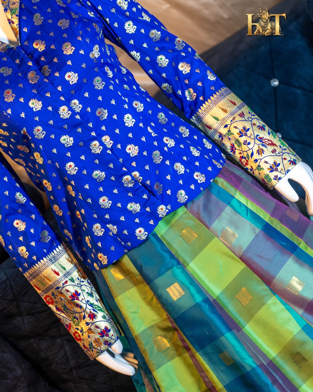 Designed for the modern woman who cherishes heritage but loves contemporary flair, this outfit exudes effortless versatility and grace. The combination of luxurious fabrics, refined craftsmanship, and a fusion silhouette makes it an unforgettable choice for any celebration — bold, elegant, and unapologetically regal.
