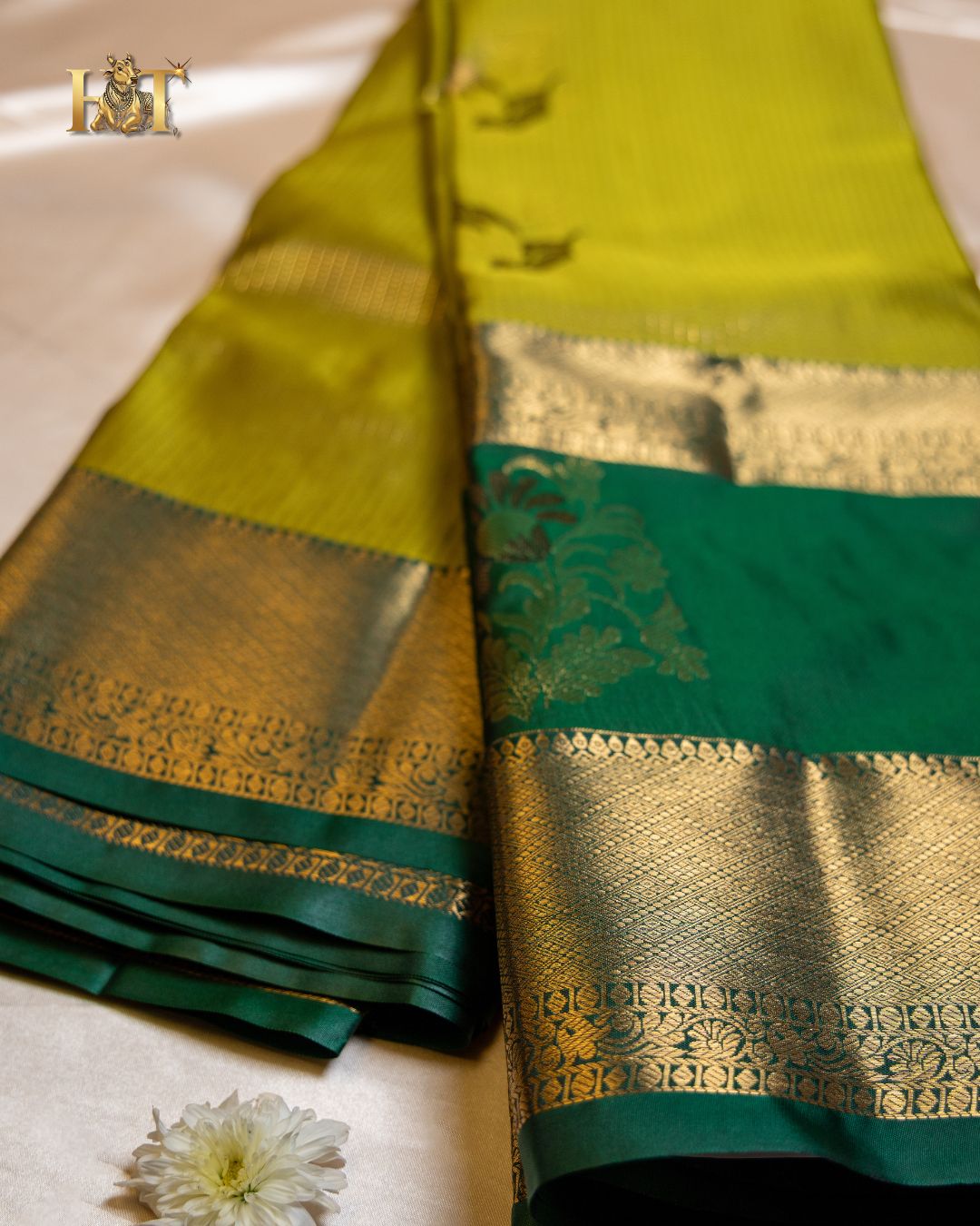 Color: Deep Green Body with Traditional Gap Zari Border